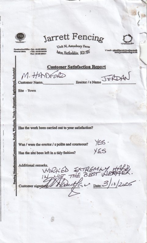 I haveĀ no hesitation in recommending Jarret-fencing to anyone. The gentleman who did the work is a credit to his craft.
