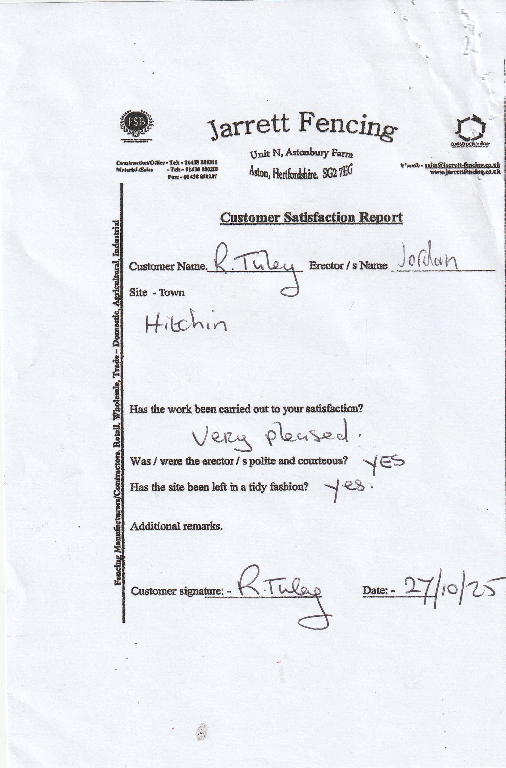 Jarrett Fencing, Unit N, Aston Bury Farm, Aston, Stevenage, SG2 7EG.